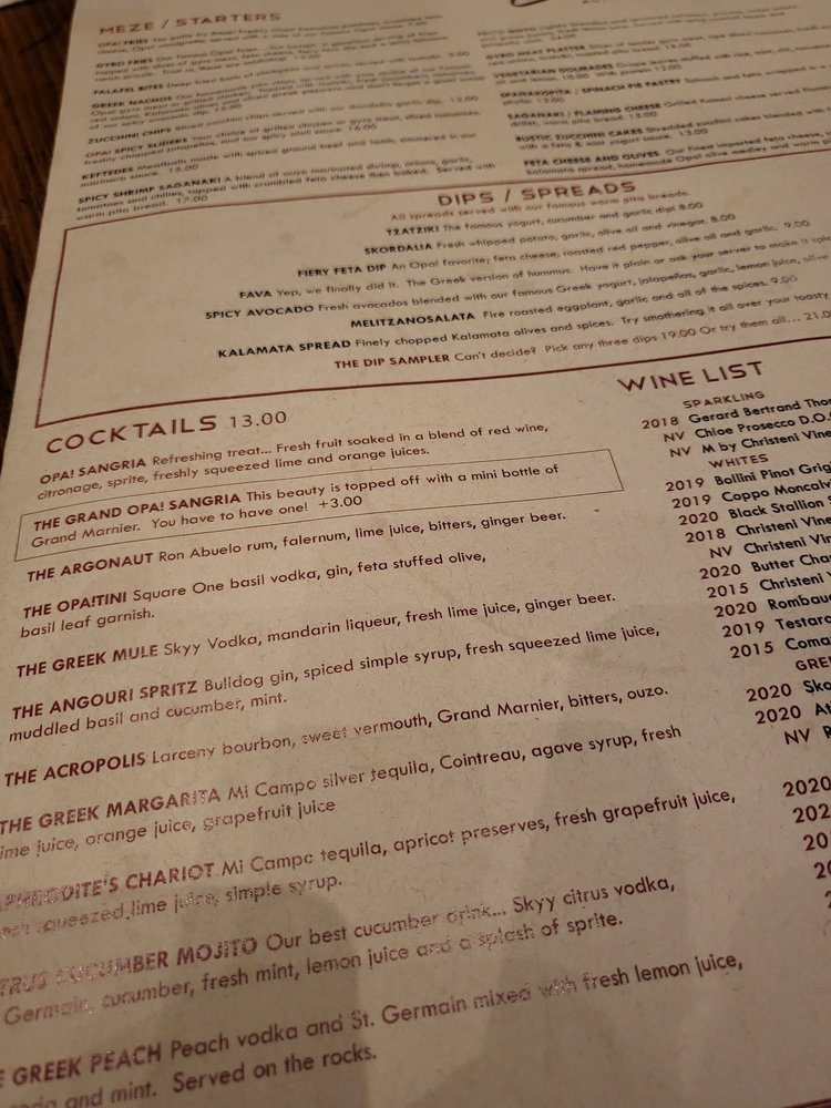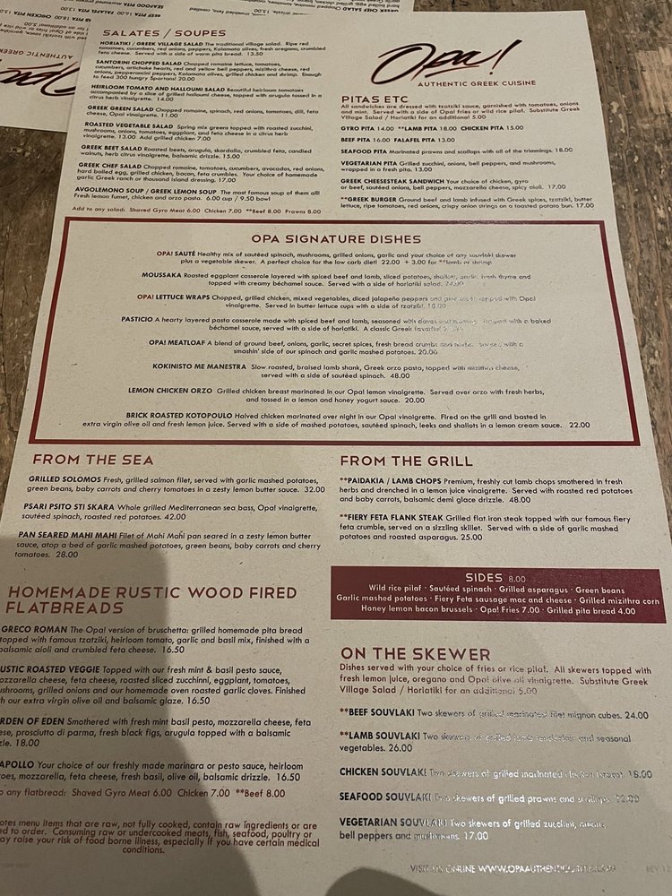 Tzatziki the famous yogurt, cucumber and garlic dip! Skordalia fresh whipped potato, garlic, olive oil and vinegar. Fiery feta dip an opal favorite; feta cheese, roasted red pepper, olive oil and garlic. Fava yep, we finally did it. The greek version of hu